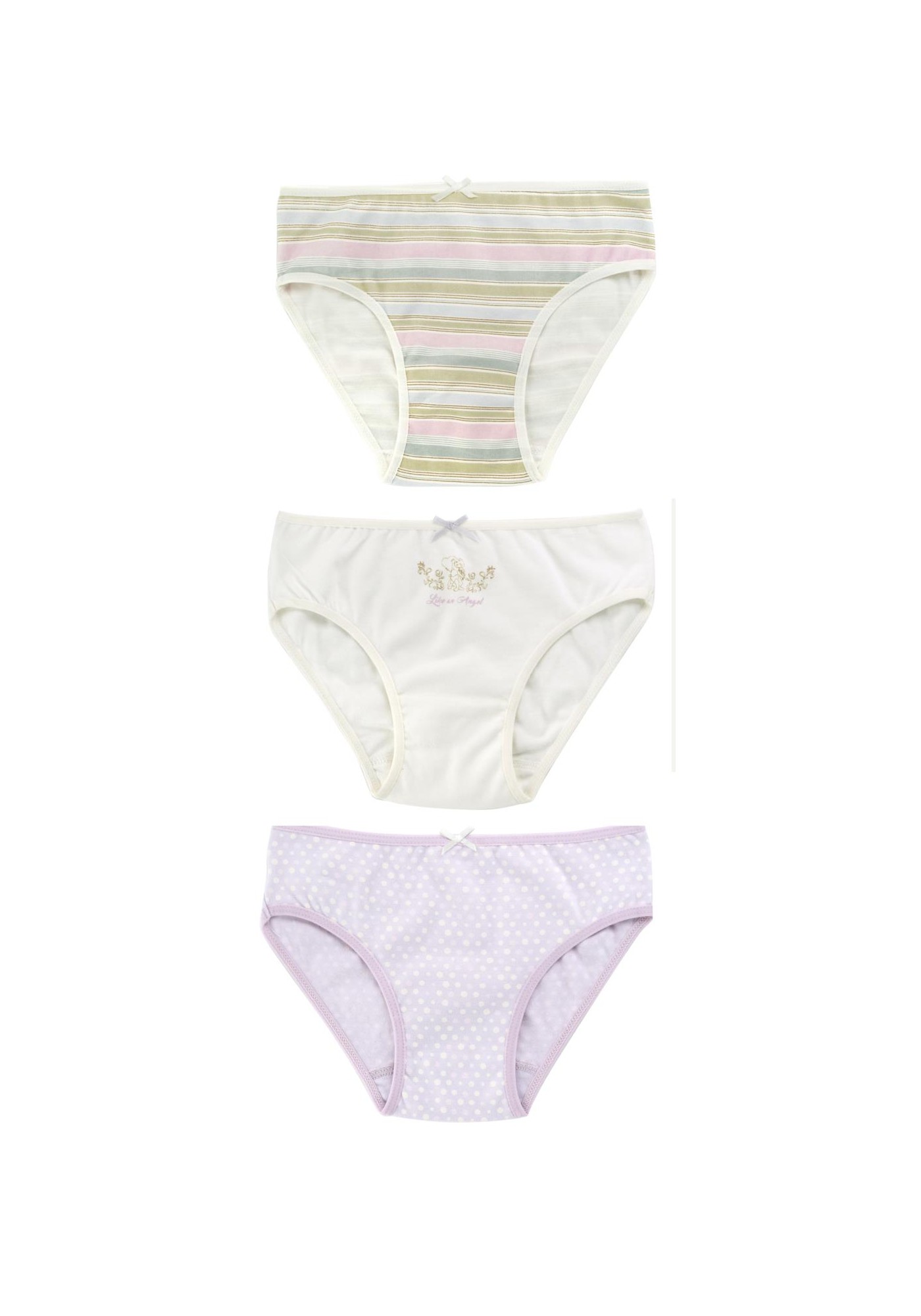 Pack de tres braguitas de niña estampadas con aire angelical.