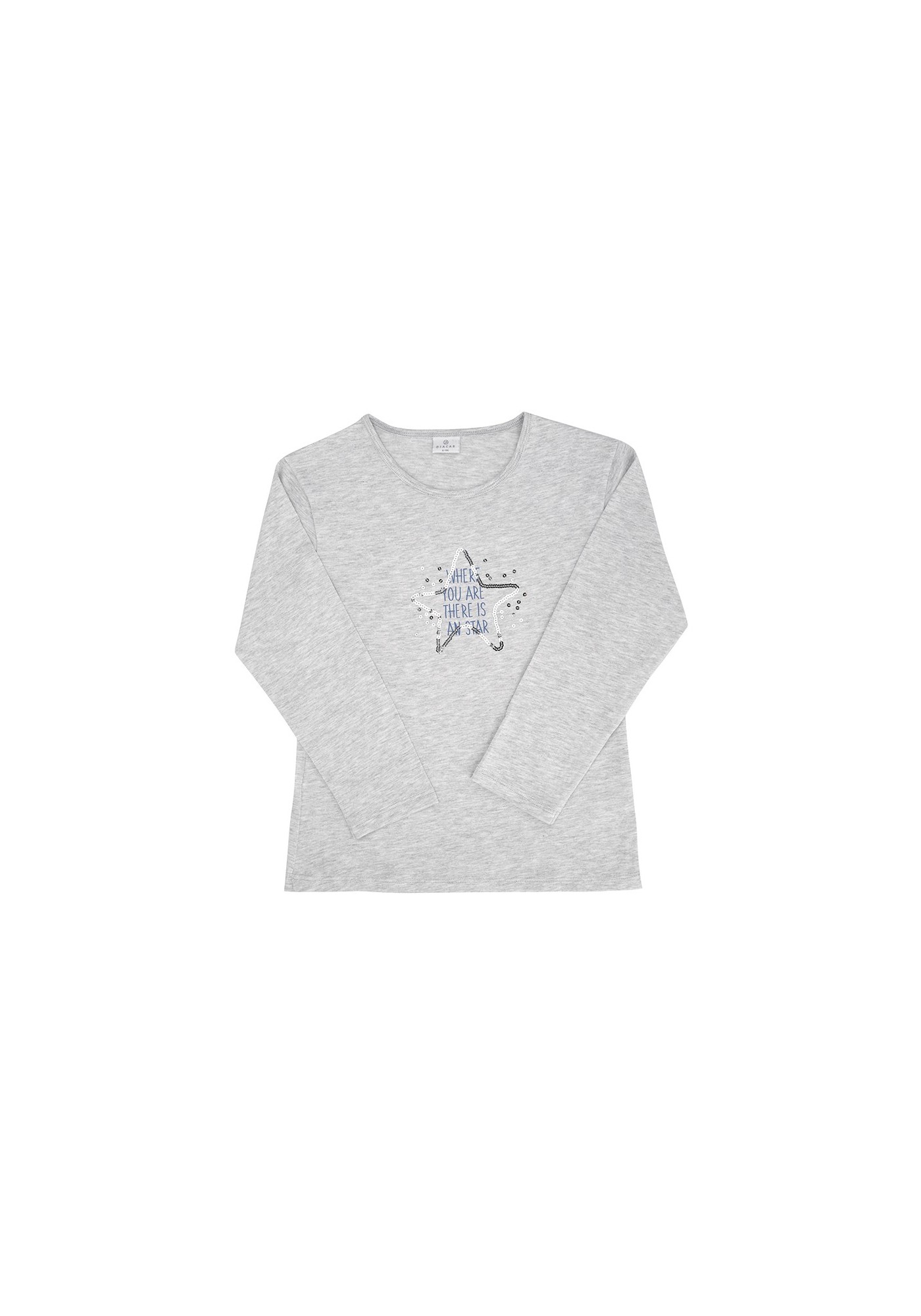 Pijama de invierno para niñas en gris y azul con estrellas estampadas.