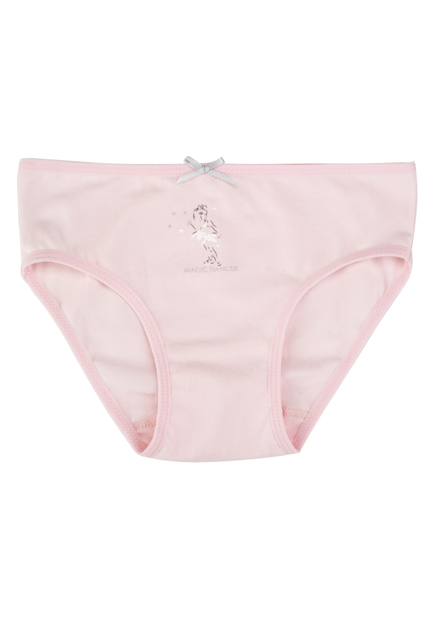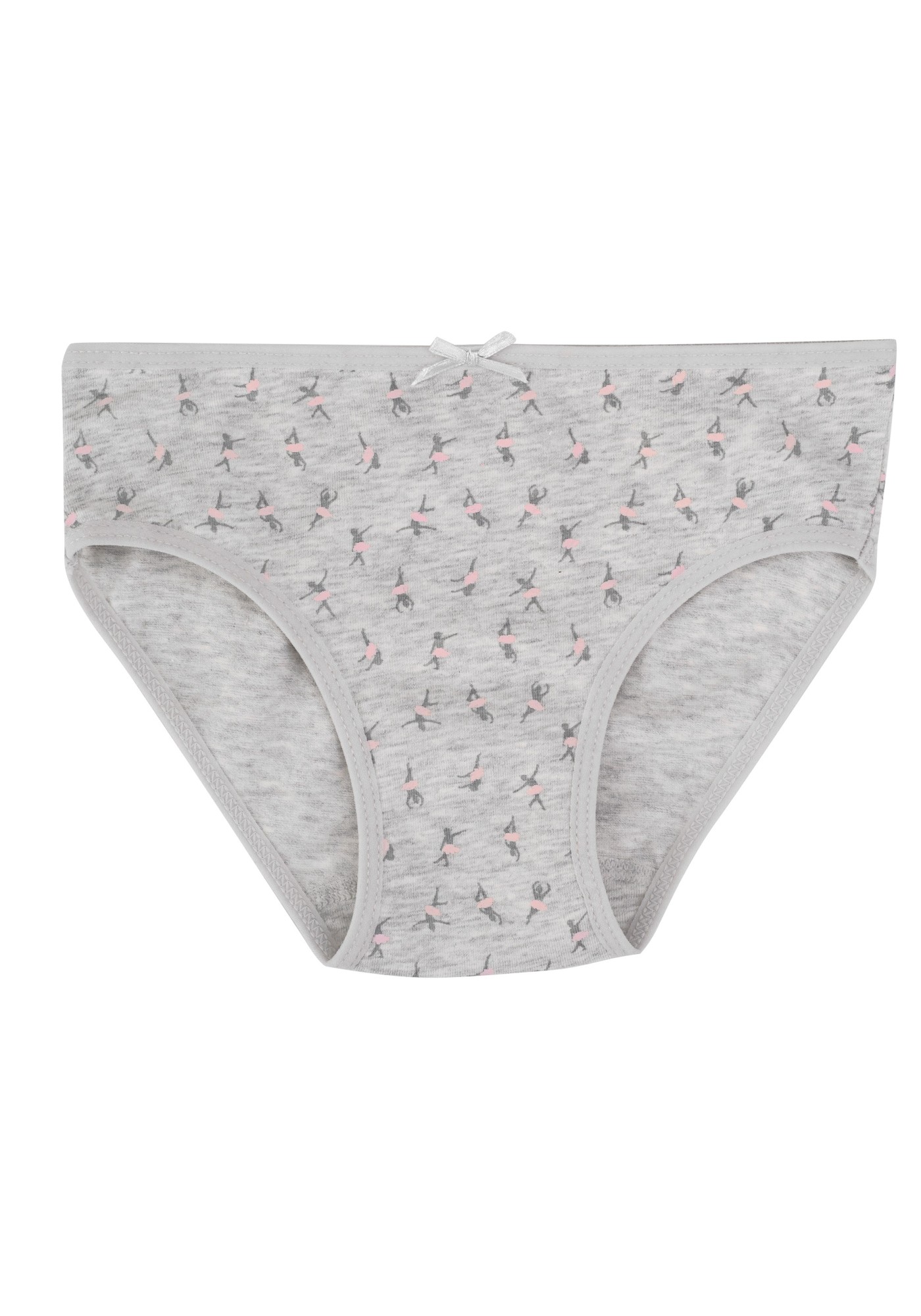 Pack de tres bragas de niña estampadas con motivos de bailarinas en tonos rosa y gris.