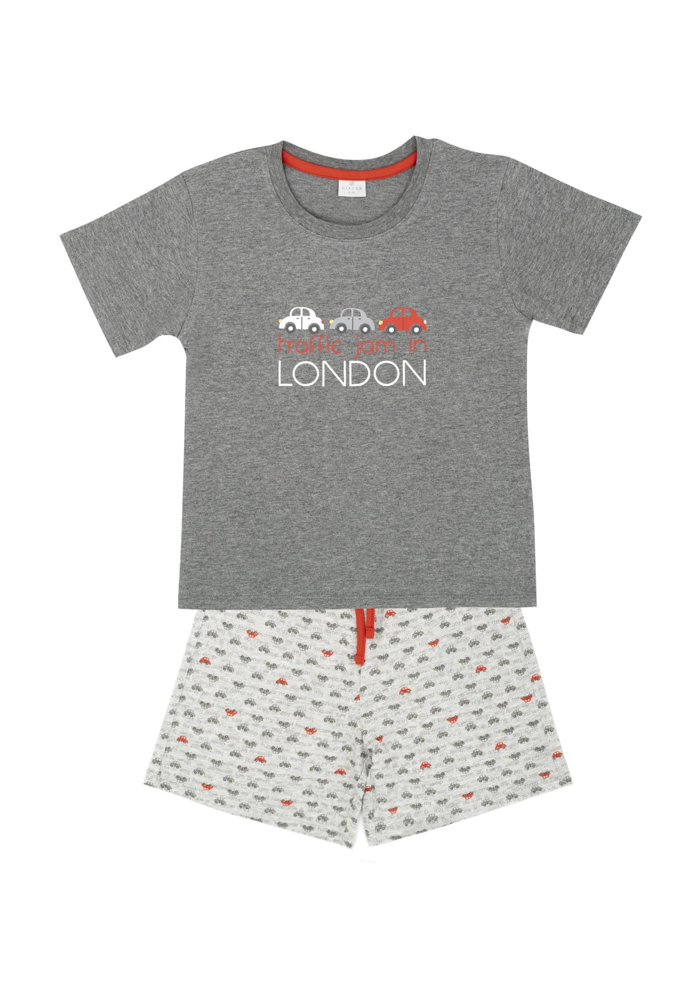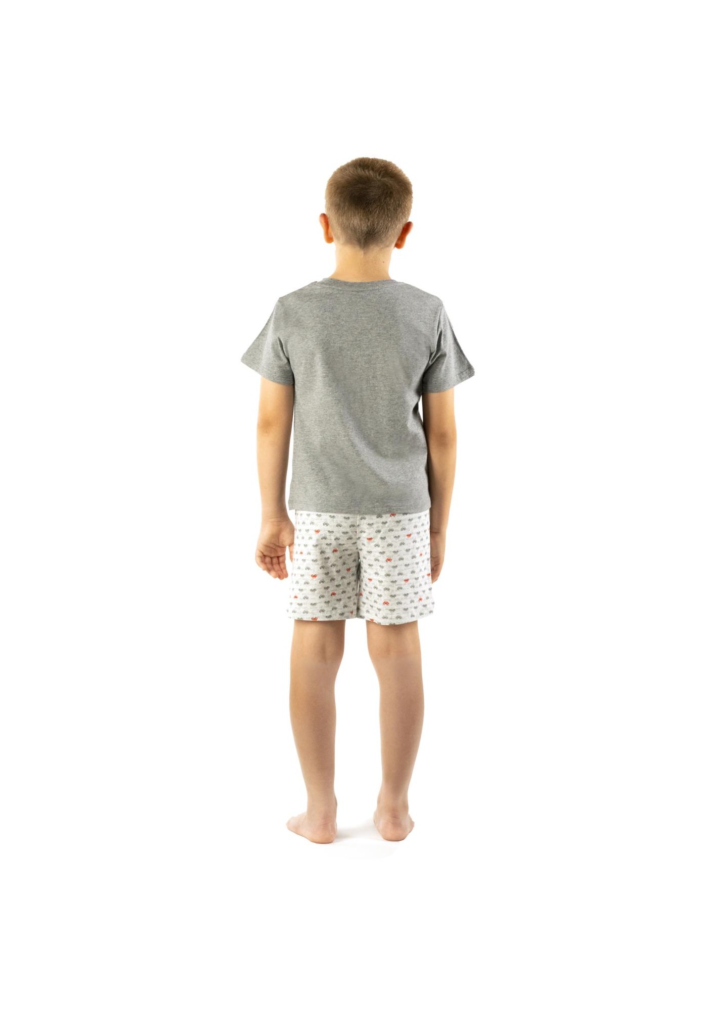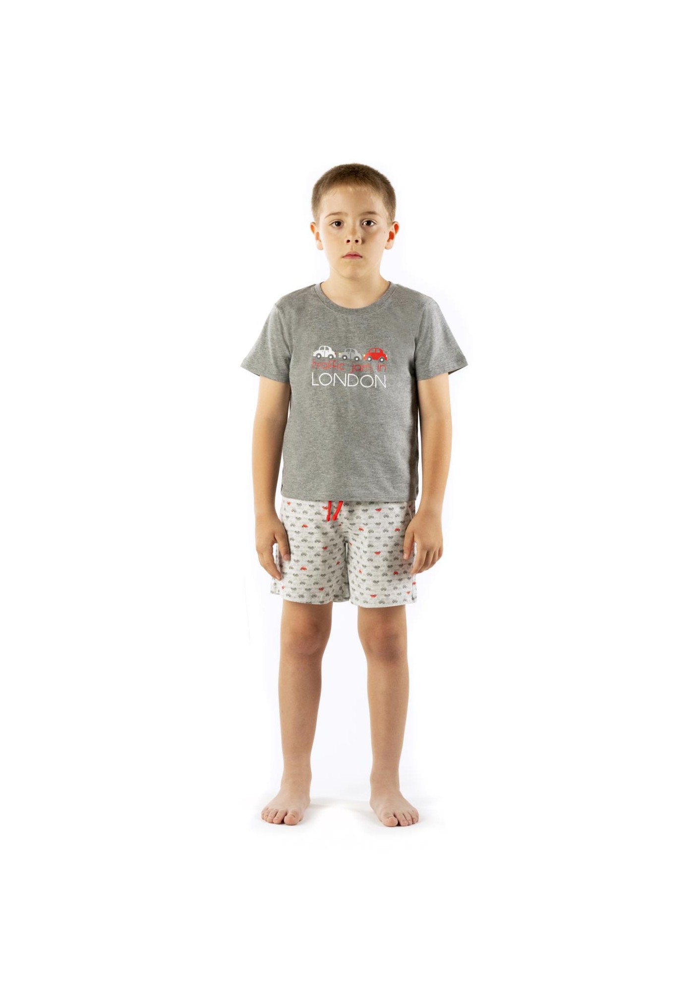 Pijama de niño de dos piezas con camiseta lisa de manga corta con pantalón estampado con muchos coches en color gris. 100º/ₒ Algodón - Single Jersey