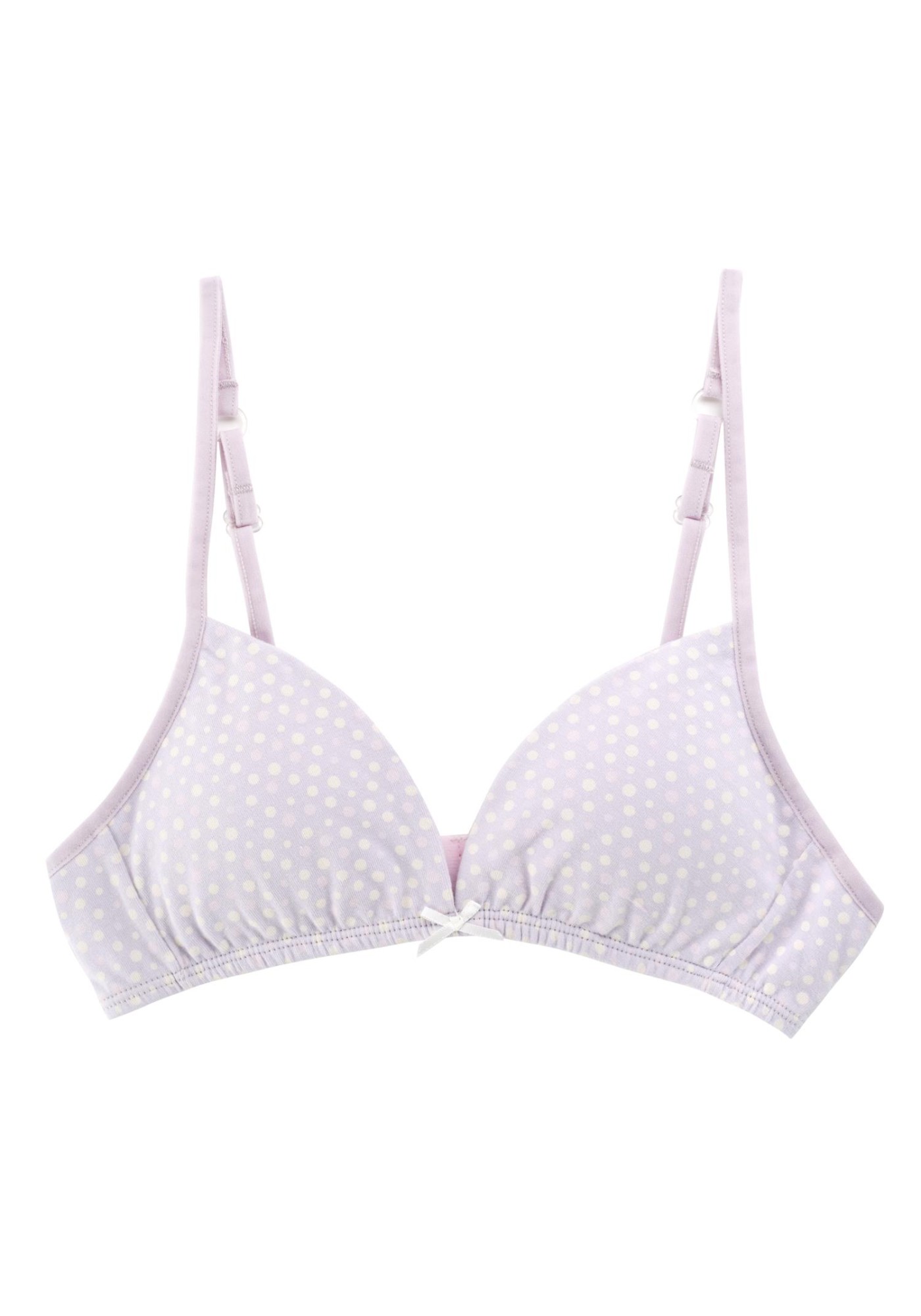 Sujetador de niña con puntos estampados en blanco sobre gris.