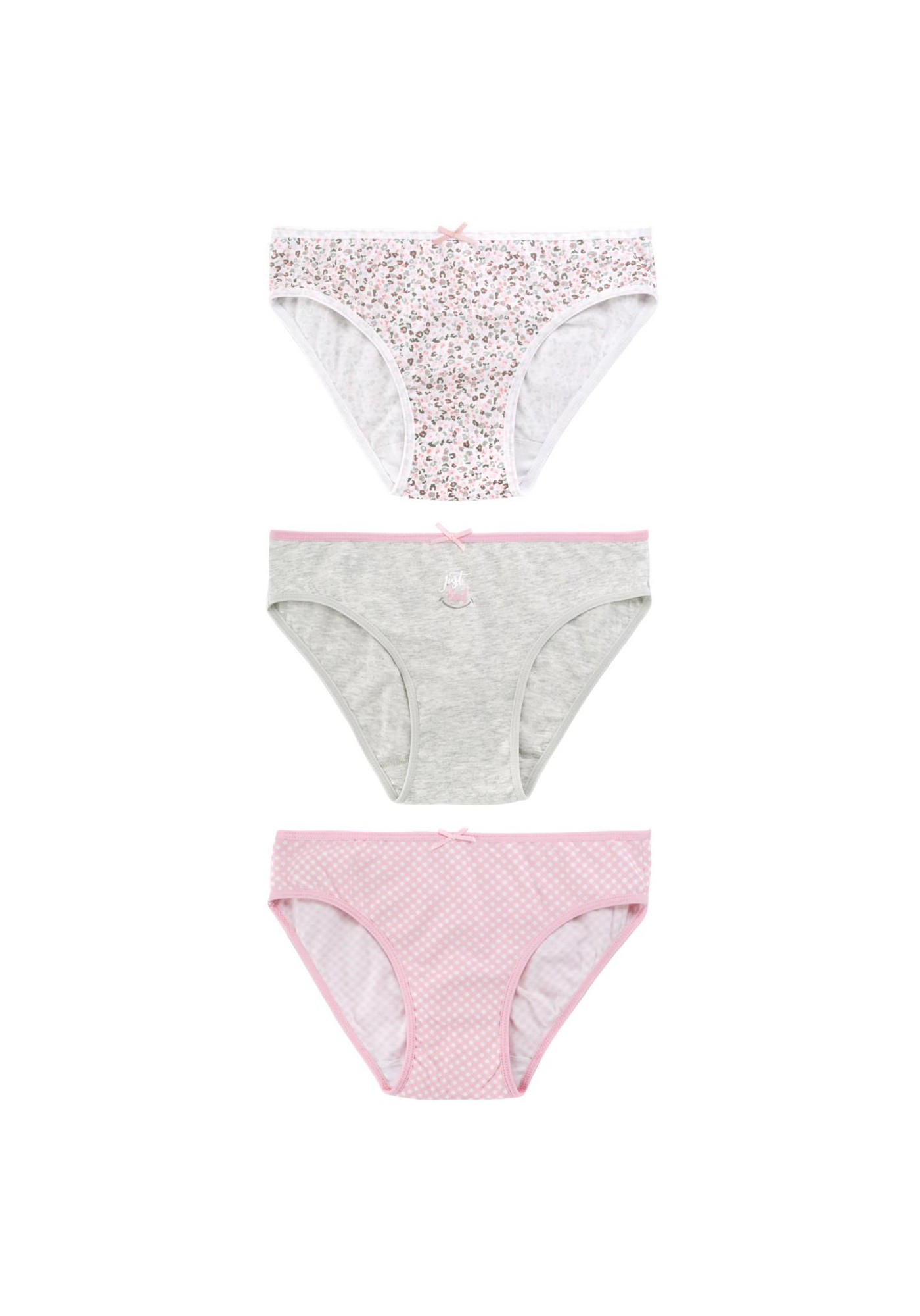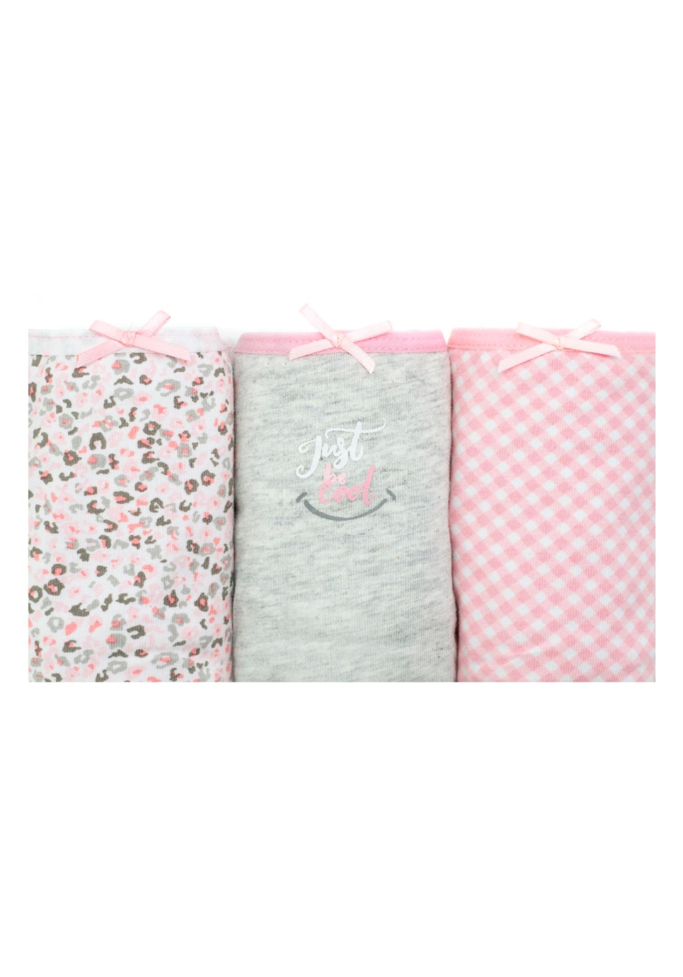 Girl's 3-Pack Briefs combining a smooth panty with an animal print print and a vichy print in gray and pink. 95º/ₒ Cotton 5º/ₒ Elastan - Single Jersey
